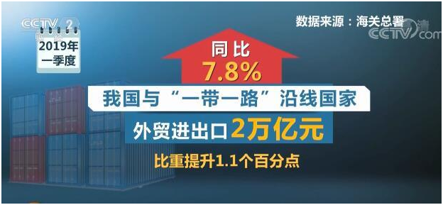 海關(guān)統(tǒng)計顯示,一季度我國與“一帶一路”沿線國家外貿(mào)進(jìn)出口2萬億元,同比增長7.8%,比重提升1.1個百分點。