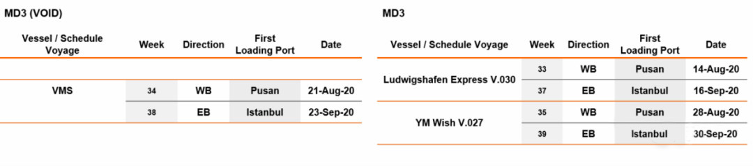 額外船舶通過(guò)蘇伊士運(yùn)河的港口掛靠路線為:釜山-上海-寧波-鹽田-新加坡-南安普敦-漢堡-安特衛(wèi)普-新加坡-香港-鹽田-釜山。在6月初,THE聯(lián)盟就公布了亞洲-北歐航線7-9月,以及其他市場(chǎng)7月份的航線調(diào)整計(jì)劃。(具體詳細(xì)文章《8月各大聯(lián)盟、船公司停航計(jì)劃!》,鏈接:http://www.alphalogxmn.com/Home/New/details/id/450.html)
