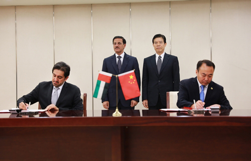 2017年9月6日上午,中國-阿聯(lián)酋經(jīng)貿(mào)聯(lián)委會第六次會議在京舉行,會議由商務(wù)部鐘山部長和阿聯(lián)酋經(jīng)濟部蘇爾坦•曼蘇里部長共同主持。在鐘山部長和曼蘇里部長的見證下,投資促進局劉殿勛局長與阿聯(lián)酋經(jīng)濟部穆罕默德·謝希次長共同簽署了《中阿雙向投資及相關(guān)貿(mào)易促進合作諒解備忘錄》。該備忘錄的簽署將加強中國與阿聯(lián)酋的投資促進合作,深化兩國在先進制造業(yè)、可再生能源和能源、衛(wèi)生醫(yī)療和醫(yī)療設(shè)備、農(nóng)業(yè)、生物技術(shù)、創(chuàng)新科技等重點產(chǎn)業(yè)的務(wù)實交流,建立起可持續(xù)的投資促進合作模式。