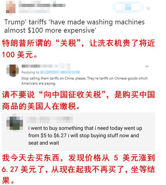 上述報(bào)道所描述的“民意”,在美國(guó)社交媒體上得到了印證——眼下因生活負(fù)擔(dān)明顯加重的美國(guó)網(wǎng)友們,正對(duì)加征關(guān)稅舉措怨聲載道: