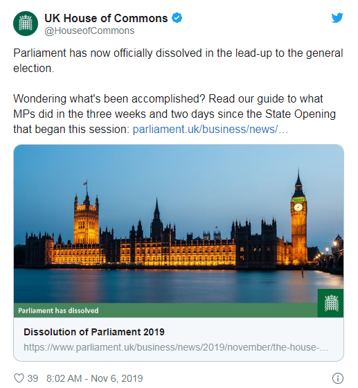 當(dāng)?shù)貢r(shí)間6日凌晨,英國(guó)議會(huì)宣布正式解散,為大選做好準(zhǔn)備。根據(jù)英國(guó)議會(huì)法案,議會(huì)解散必須在大選前25天進(jìn)行。