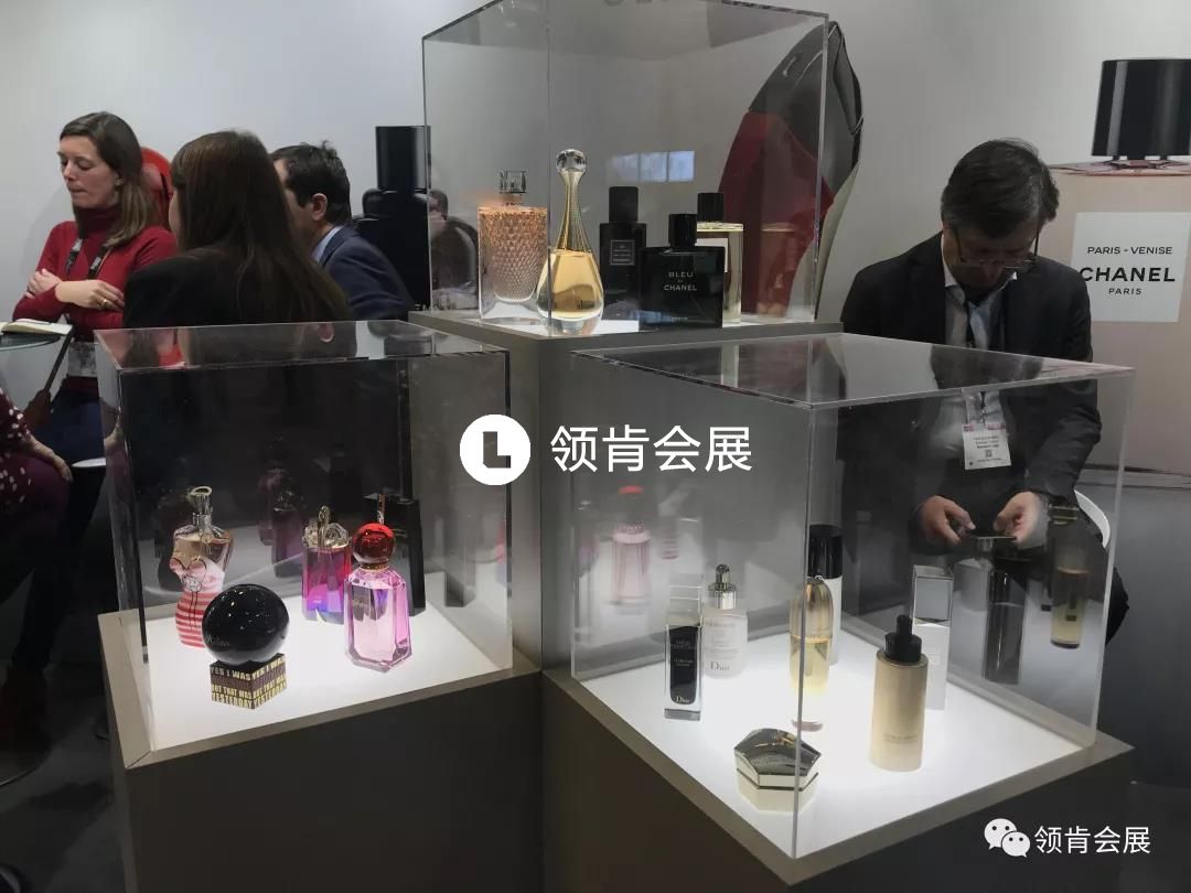 參會產品有香水瓶、成品包材、紙盒包裝盒、箱包、氣霧劑及配件、原料機械、酒瓶包裝設計、泵頭等,現(xiàn)場不乏有香奈兒、LV主題展臺。